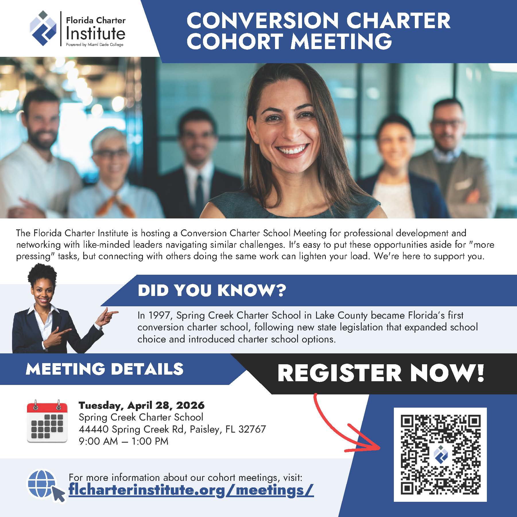 The Florida Charter Institute is hosting a Conversion Charter School Meeting for professional