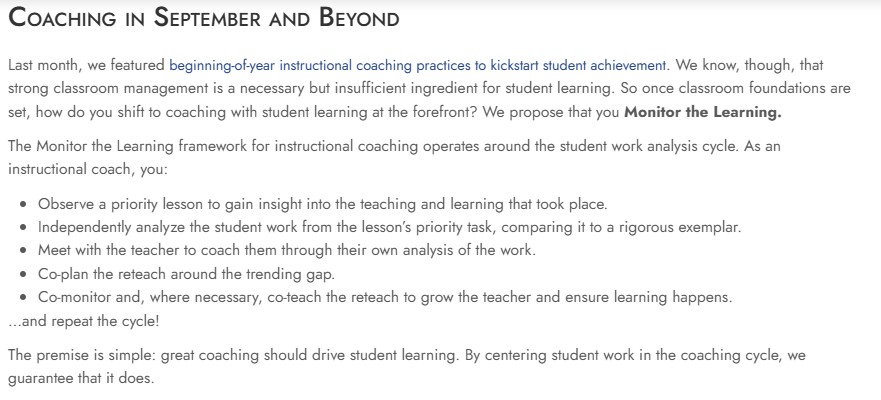 Straight from our FCI Insights blog, learn about the Monitor the Learning framework for instructional coaching and how it operates around the student work analysis cycle. Read more here.