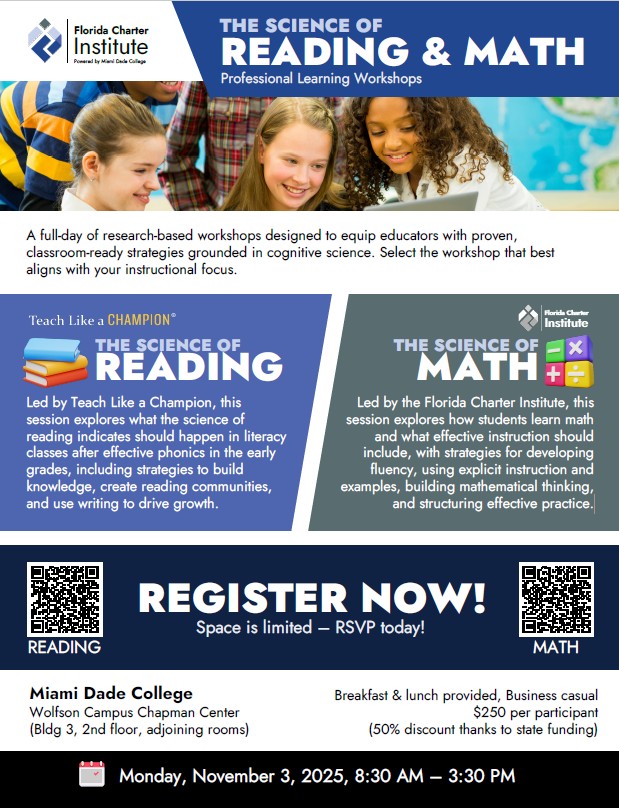 FCI Connect is the monthly newsletter from the Florida Charter Institute. FCI’s mission is to serve as Florida’s premier hub for charter excellence and insight by providing research-based best practices, resources, and support. FCI is powered by Miami Dade College and authorized in Florida statute.
