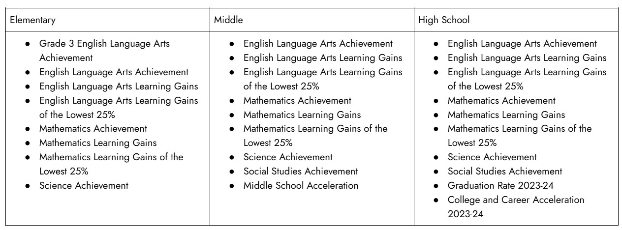 Questions regarding the school grading process can be directed to the Bureau of Accountability Reporting at accountability@fldoe.org or 850-245-0411.